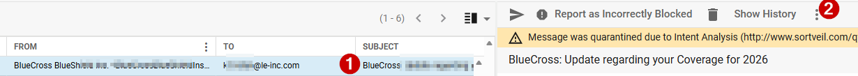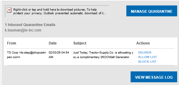 Selecting “View Message Log” will open a website that displays all your quarantined messages.